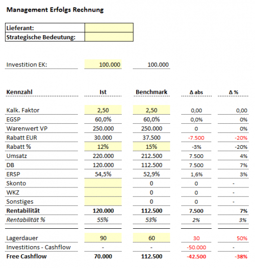 Mit der Management Erfolgsrechnung (MER) analysieren Sie Ihren Lieferanten gegenüber Benchmark Daten.