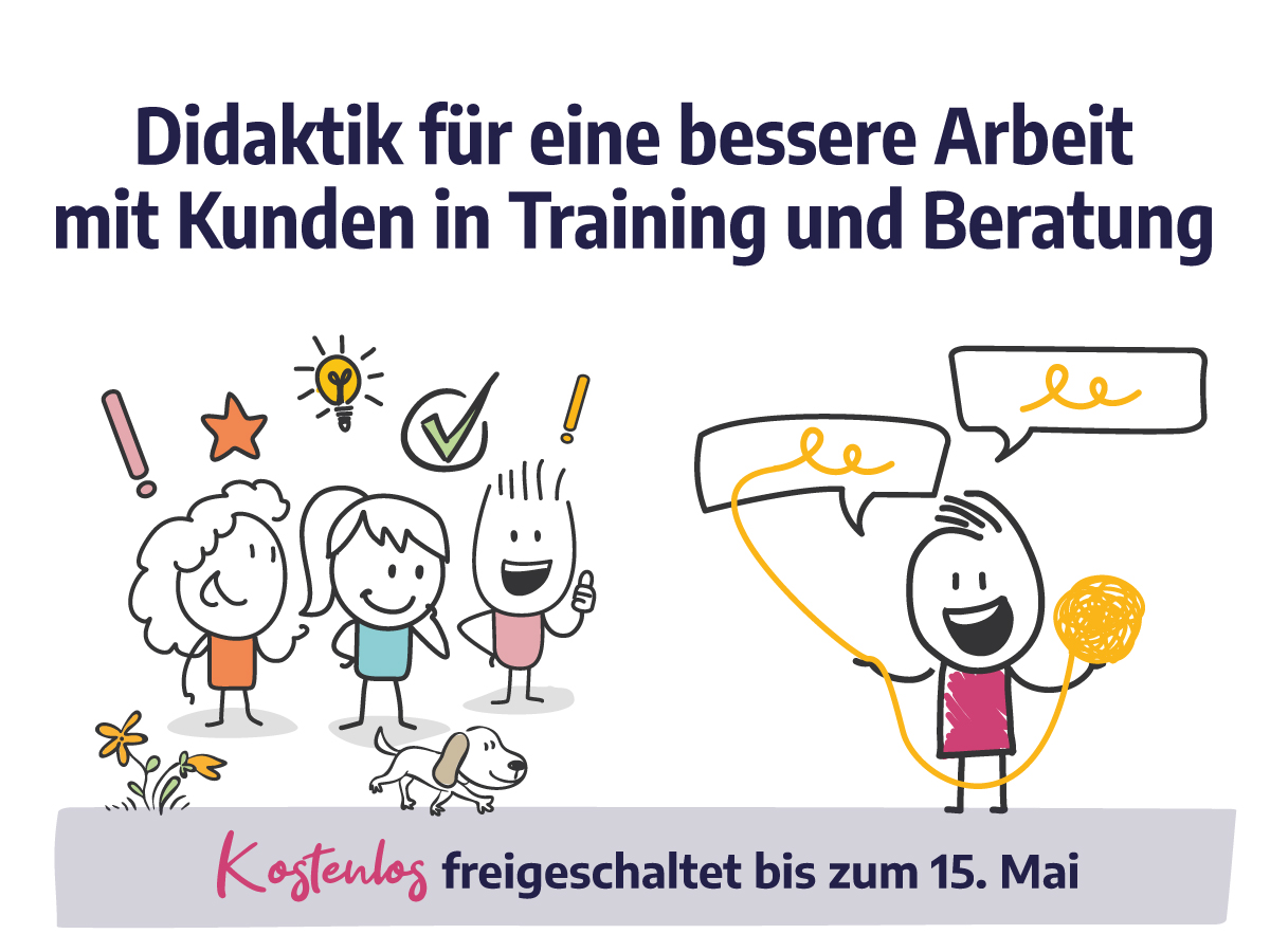 Jetzt im Moment (noch bis zum 15. Mai) ist der Premium-Selbstlernkurs "Didaktik für eine bessere Arbeit mit Deinen Kunden" freigeschaltet, auf den Du als Clubmitglied sofort kostenlos Zugriff hast (der Kurs wird nur 1x im Jahr freigeschaltet und kostet sonst 345,-€ netto).