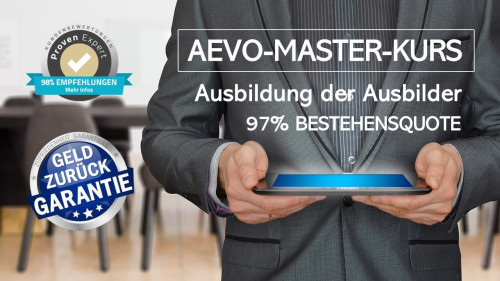 David G. aus Köln sagt: „1. Das Material ist fachlich top und didaktisch super aufbereitet. 2. Die Aufgabenformen wechseln und sind adäquat gewählt. 3. Ein sehr professioneller AEVO-Kurs. Ich bin begeistert. Alles in allem fühle ich mich gut auf die AEVO-Prüfung vorbereitet. Vielen Dank!“