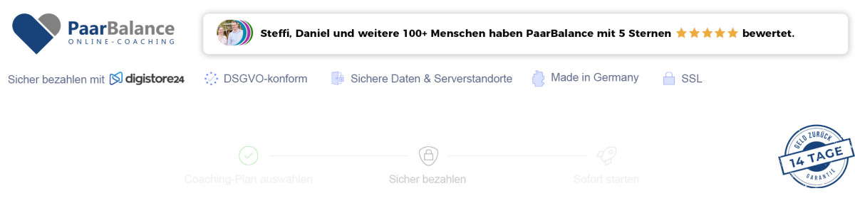 Wir möchten, dass Sie mit dem PaarBalance-Coaching zufrieden sind und dass das Programm hilfreich für Sie ist.
