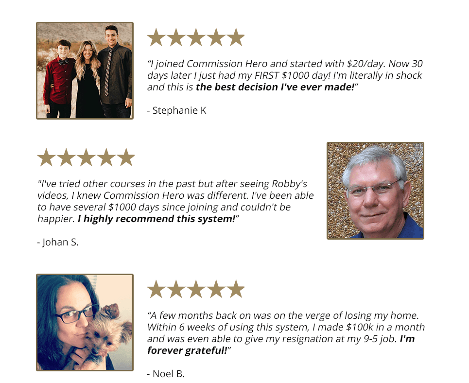 ✅ Support: You'll get help personally from me every single day in the Facebook group along with the thousands of other success minded members of Commission Hero!
