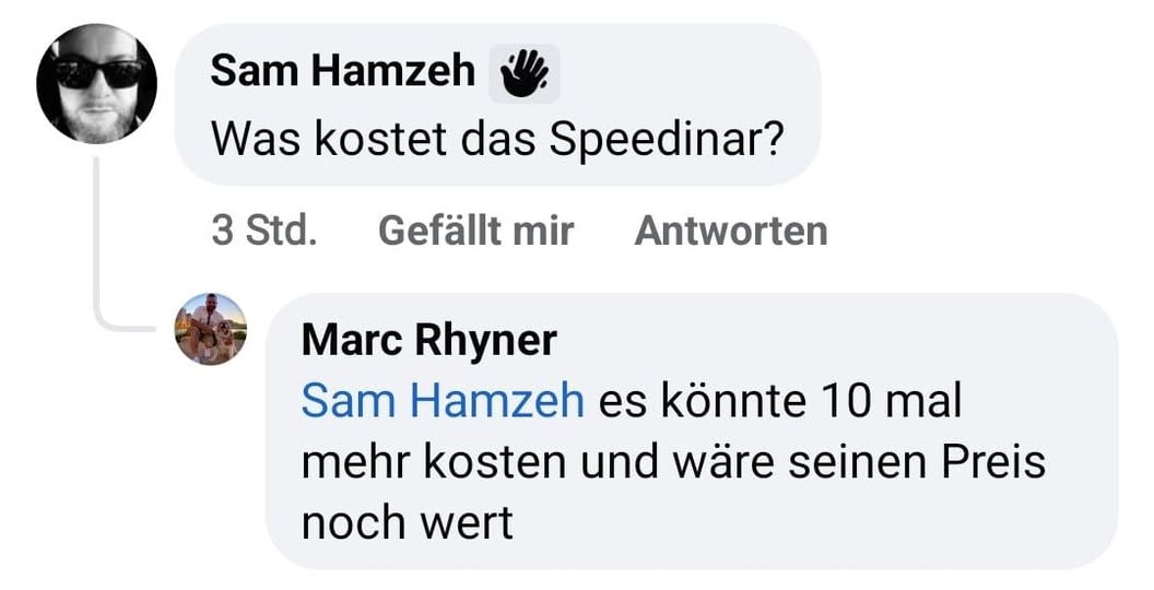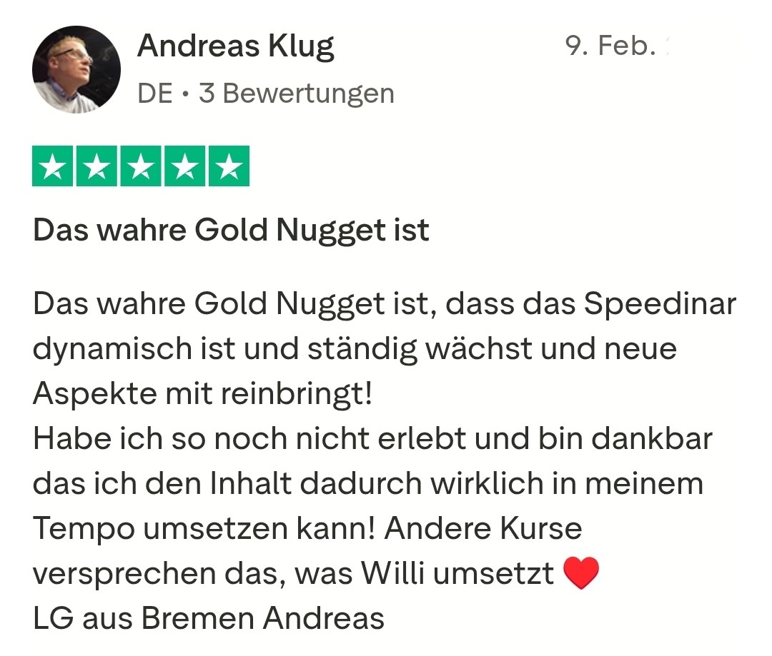 Du willst dein Gesicht nicht zeigen? Kein Problem. Du bekommst die vollständige Faceless-Variante des Speedinars – nur mit Texten. Und zusätzlich die 5-Minuten-Highspeed-Variante für alle, die schnell starten und sofort erste Ergebnisse sehen wollen. (Wert 79 €)