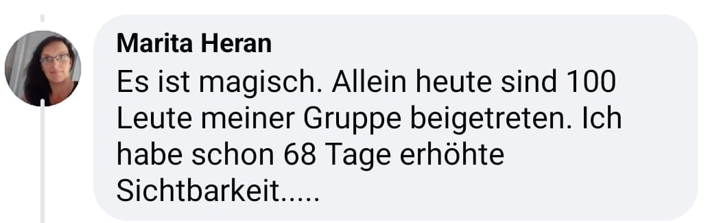Eine Networkerin bekommt mit einem einzigen Textposting über 100 Anfragen – und erreicht mindestens 11.000 Menschen. Kein Bild, kein Video, keine Kamera. Nur eine Hintergrundfarbe und maximal sechs Wörter. Ich habe sie persönlich nach ihrer genauen Vorgehensweise gefragt – und habe jetzt die Formel dahinter. Die bekommst du hier. (Wert 99 €)
