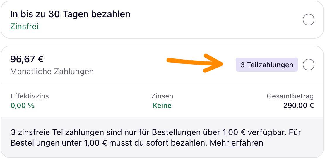 Du möchtest via Ratenzahlung zahlen?Zahlst du über Klarna, kannst du bequem den Preis in bis zu 24 Raten aufsplitten.