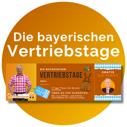 Nur hier und jetzt für einmalige 47 Euro: Sichere Dir jetzt das unglaubliche VIP-Ticket zu den bayerischen Vertriebstagen.