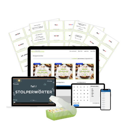 Ihr Kind übt schon lange – und trotzdem tauchen immer wieder dieselben Wörter falsch auf? Mit dem Stolperwörter-Training werden die häufigsten Fehlerwörter endlich sicher geschrieben – in kleinen, gut umsetzbaren Lern-Häppchen.