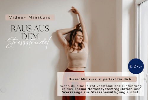 In meinem Minikurs >RAUS AUS DEM STRESSSTRUDEL< zeige ich dir, wie unser Nervensystem funktioniert und wie du aus dem täglichen Stressstrudel herausfindest, um zu mehr GELASSENHEIT & INNERER RUHE zu gelangen.