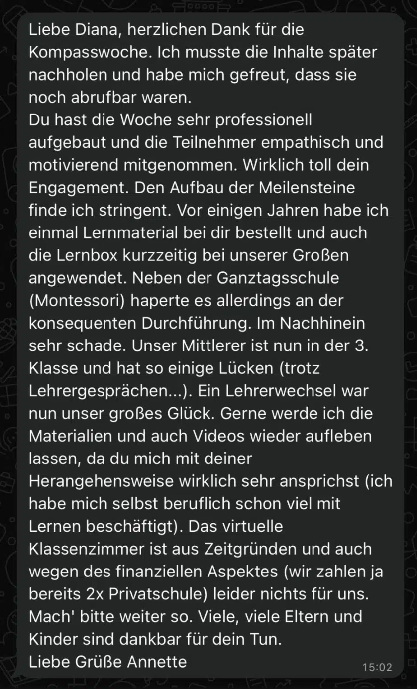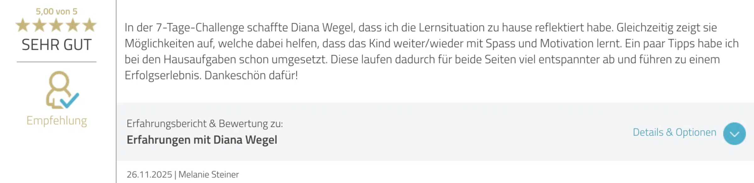 „Eigentlich lief es bei uns ganz gut – dachte ich. Mein Sohn hatte manchmal keine Lust, aber ich hielt das für normal. Dann habe ich die 7-Tage-Challenge ausprobiert – und war überrascht, wie viel ich über das Lernen von Kindern noch nicht wusste. Heute kann ich ihn viel gezielter unterstützen. Er hat mehr Freude am Lernen – und ich mehr Sicherheit im Alltag.“ – Magda mit ihrem Sohn (2. Klasse)