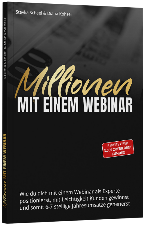 Dieses digitale Webinar-Workbook begleitet dich bei deinem eigenen Webinar und ist so konzipiert, dass du es Step by Step in nur 56 Tagen erstellen kannst. Das Workbook hält jeden Tag für dich ein überschaubares To Do bereit, das du in unter 30 Minuten erledigen kannst und sofort in die Webinar-Vorlage einfügen kannst. Dieses eWorkbook mit der Webinar-Vorlage ist die perfekte Ergänzung zum Buch. Wenn du es haben willst, dann aktiviere mit einem Klick unten die Checkbox und du erhältst das eWorkbook mit der Webinar-Vorlage und einem Anleitungsvideo in unserem Mitgliederbereich mit deinem persönlichen Zugang für eine einzige Zahlung von nur 39€ für das eWorkbook + Webinar-Vorlage (statt 72,20€). Dieses Angebot gibt es nur hier und nirgendwo außerhalb.