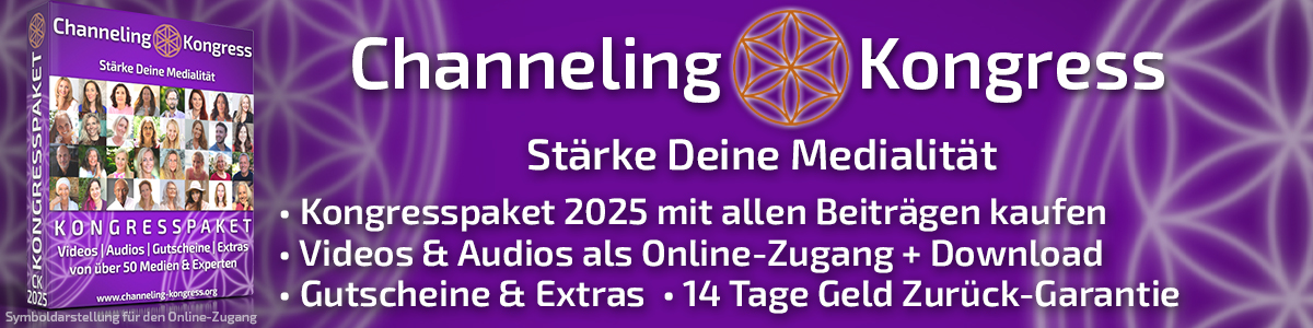 Wir weisen darauf hin, dass die Inhalte des Online Channeling Kongresses ausschließlich zu Informationszwecken bestimmt sind. Diese Informationen wurden nach bestem Wissen und Gewissen recherchiert. Die Verwendung der gegebenen Tipps, Ratschläge, Anwendungen, Übungen und Rezepte erfolgt stets auf eigene Gefahr. Wir schließen jede Haftung aus und übernehmen keine Gewähr für die Richtigkeit der gegebenen Informationen. Der Online Channeling Kongress bietet keinen Ersatz für professionelle Behandlungen, Diagnosen und Empfehlungen! Bei gesundheitlichen Beschwerden wenden Sie sich bitte immer an einen Arzt oder Heilpraktiker. Die gegebenen Informationen stellen keine Beratung des Benutzers dar. Die Online Channeling Kongress Inhalte stellen keine Diagnose und geben keine Behandlung vor. Es wird dringend davon abgeraten, die angebotenen Informationen als Selbstbehandlungshinweise zu benutzen. Wir empfehlen Ihnen, sich in gesundheitlichen Angelegenheiten von einem Arzt oder Heilpraktiker professionell beraten zu lassen. Für Schäden oder andere ungewollte Folgen, die aus der Anwendung der im Online Channeling Kongress gegebenen Informationen resultieren, schließen wir jede Haftung aus.