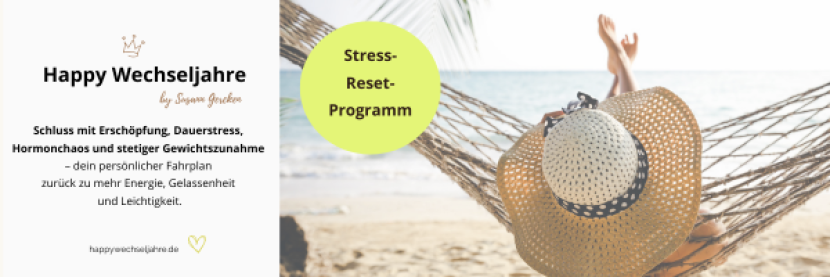 Mit dem Stress Reset Programm für Frauen in den Wechseljahren lernst du, wie du dein Nervensystem beruhigst, Stress und Cortisol nachhaltig regulierst und so den Kreislauf aus Erschöpfung, Hormonchaos und hartnäckigem Bauchfett durchbrichst.