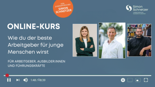 Unser Online-Kurs «Wie du der beste Arbeitgeber für junge Menschen wirst» enthält spezifische Videosequenzen und Lernmaterialien für alle, die junge Menschen für ihr Unternehmen gewinnen und binden wollen.