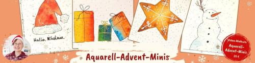 ✔ 6 einfache weihnachtliche Aquarell-Motive zum Nachmalen aus der Aktion "Advent-Minis 2024"