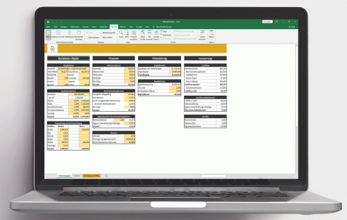 - Eine Excel-Datei (XLSX) mit vollständig hinterlegten Formeln