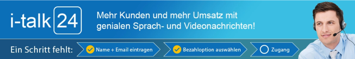 Dein VORTEIL: Mit i-talk24 kommunizierst du deutlich effektiver mit deinen Kunden. Du ersetzt lange Texte durch kurze Sprach- oder Videonachrichten und kannst dadurch häufiger, persönlicher und strukturierter mit deinen Kunden kommunizieren. Viele Anwender berichten, dass sie dadurch erheblich Zeit sparen und schneller Rückmeldungen erhalten. Effizienz pur in deiner Kundenkommunikation!
