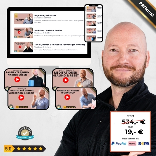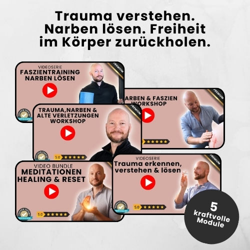 Dieses Paket ersetzt keine medizinische oder psychotherapeutische Behandlung. Es zeigt dir, wie Trauma, Narben und alte Verletzungen im Körper wirken – und wie du sie ganzheitlich integrieren kannst, indem Körper, Nervensystem und Emotion wieder zusammenfinden.