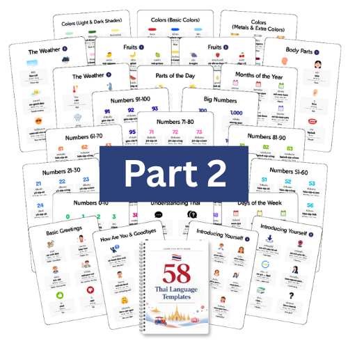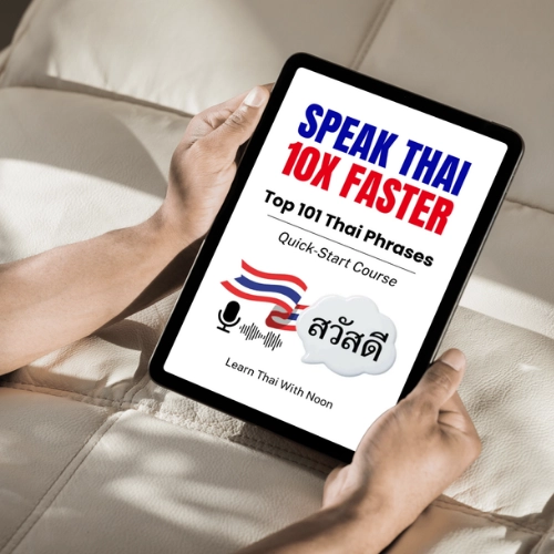 Get the complete 101 Thai Phrases bundle with the guide, workbook, printable cheatsheets, audio companion, and pronunciation video - everything you need to start speaking faster.