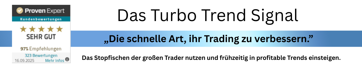 Nutzen Sie unsere bewährte Einstiegsmethode „Turbo Trend Signal (TTS)“ für mehr Erfolg an den Forex-, Futures- und Aktienmärkten.